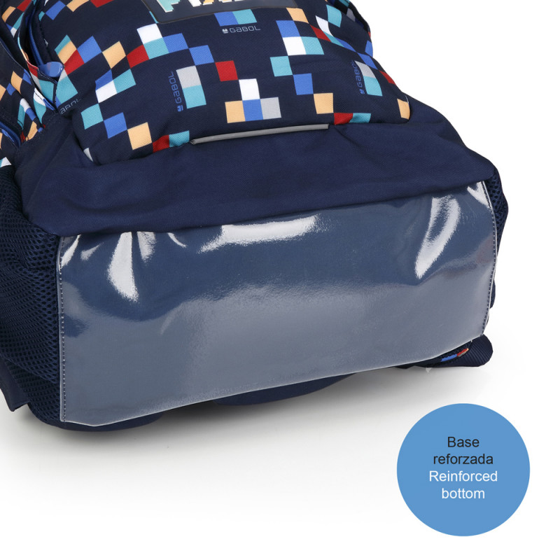 Mochila Gabol CUBIK. Mochila con 3 compartimentos resistente al agua. Espalda ergonómica de rejilla transpirable. Protección añadida en las cremalleras. Base acolchada con protector de plástico de refuerzo. Hombreras acolchadas y reforzadas. Incluye identificador y organizador en su interior. Bolsillo en el lateral exterior. Capacidad para portátil 15,6''. Fabricada con material libre de PVC, con un tejido de alta densidad y mayor calidad. Su material resistente al agua, sumado a las cremalleras cubiertas protengen el interior de la lluvia. Medidas: 32x44x18 cm