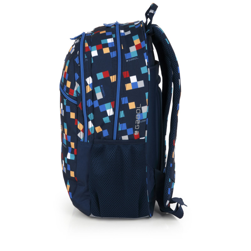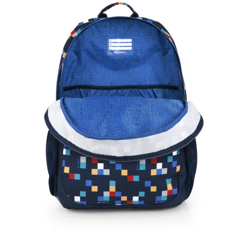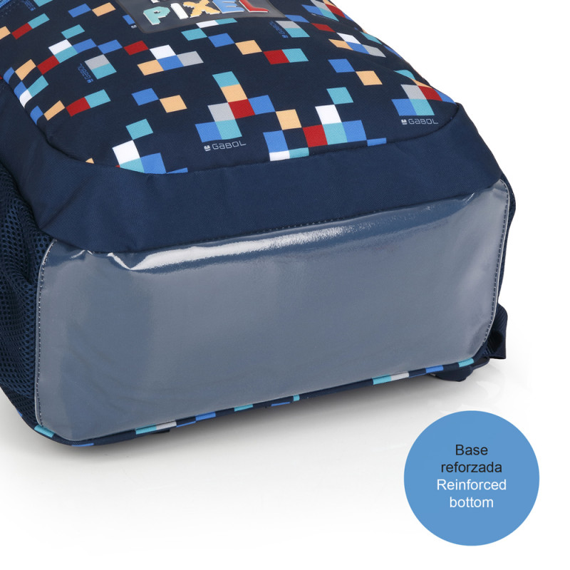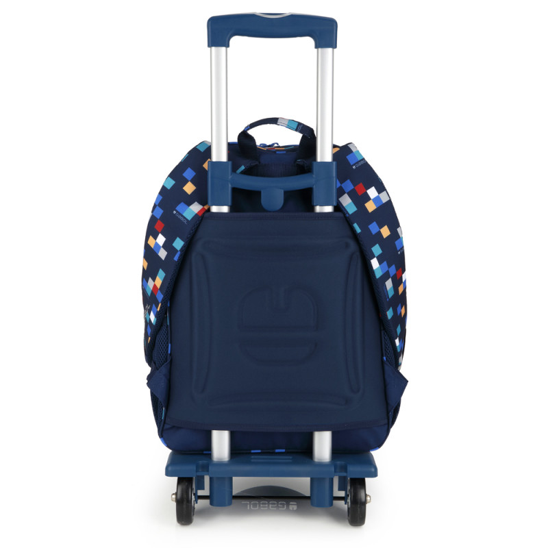 Mochila adaptable a carro Gabol CUBIK. Mochila adaptable a carro con 2 compartimentos. Espalda acolchada para servir de amortiguación con el contenido. Protección añadida en las cremalleras. Base acolchada con protector de plástico de refuerzo. Hombreras acolchadas y reforzadas. Incluye identificador y organizador en su interior. Bolsillo en el lateral exterior. Material resistente al agua. Fabricada con material libre de PVC, con un tejido de alta densidad y mayor calidad. Medidas: 34x46x20 cm