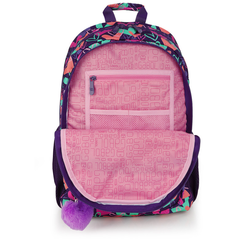 Mochila de dos compartimentos adaptable a carro Gabol KOKORO. Fabricada en poliéster. Resistente al agua. Cuenta con espalda acolchada, identificador, organizador interno, funda y capacidad para portátil de 15,6'', base reforzada y elementos reflectantes. Medidas: 34x46x20cm.