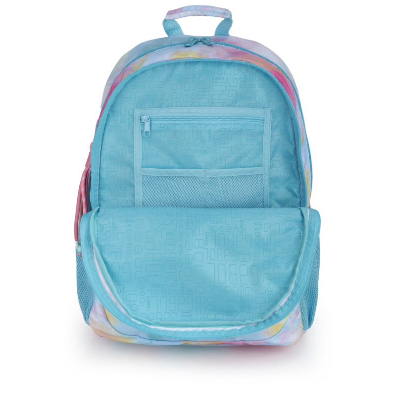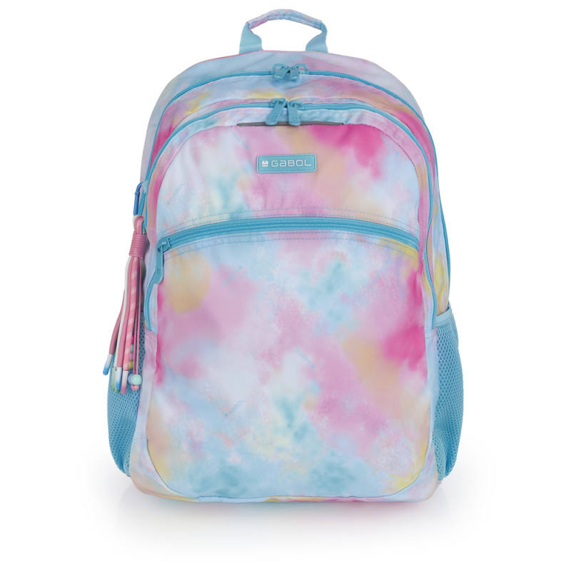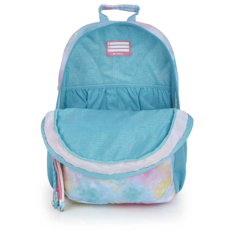 Mochila de dos compartimentos adaptable a carro Gabol MYSTIC. Fabricada en poliéster. Resistente al agua. Cuenta con espalda acolchada, identificador, organizador interno, funda y capacidad para portátil de 15,6'', base reforzada y elementos reflectantes. Medidas: 34x46x20cm