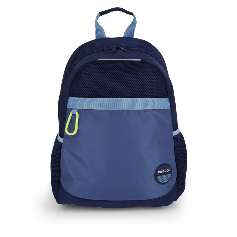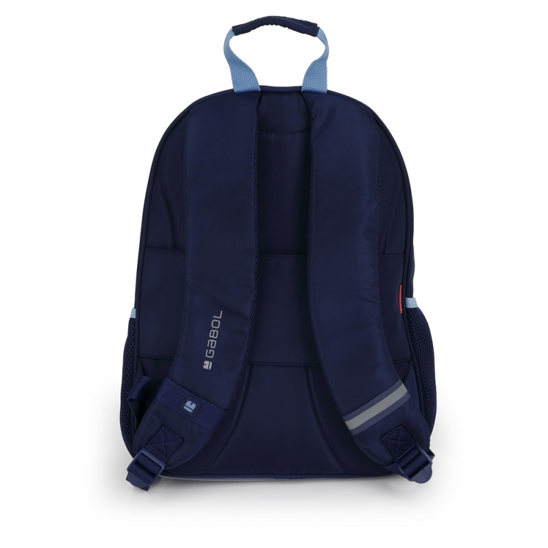 Mochila pequeña con acople a carro Gabol WHISPER. Fabricada en Poliéster. Resistente al agua. Cuenta con espalda acolchada. Identificador, organizador interno, base reforzada y elementos reflectantes. Medidas: 31x41x15cm.