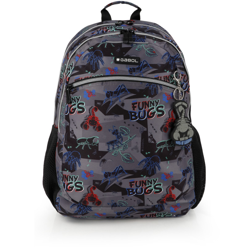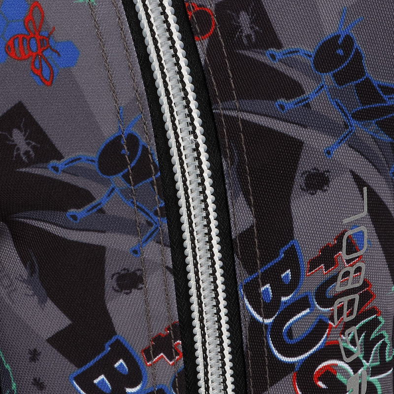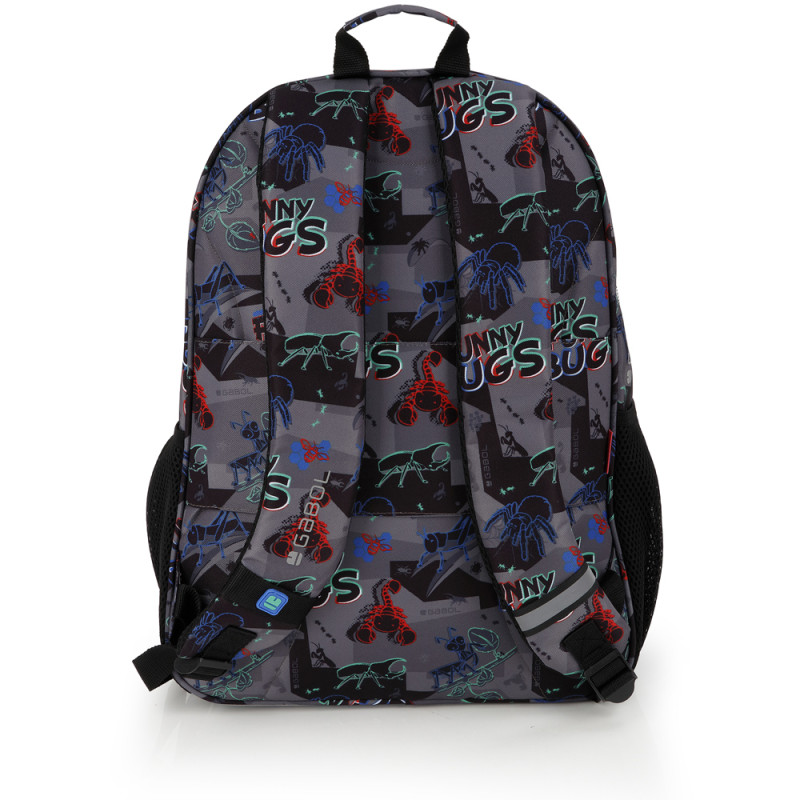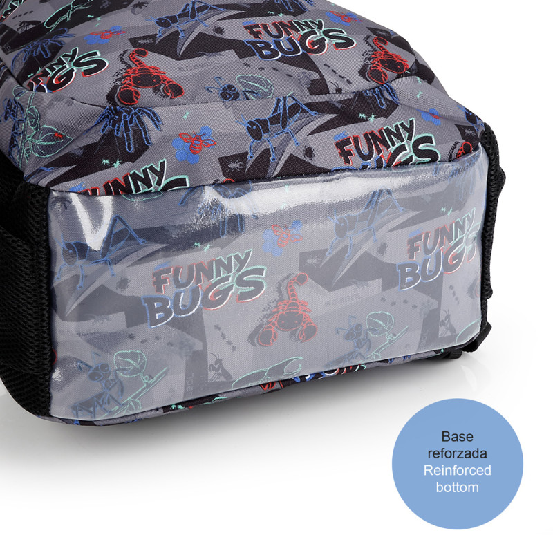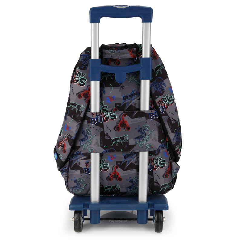 Mochila adaptable a carro con dos compartimentos Gabol BUGS. Fabricada en poliéster. Resistente al agua. Cuenta con espalda acolchada, identificador, organizador interno, funda y capacidad para portátil de 15,6'', base reforzada y elementos reflectante. Medidas: 34x46x20cm.