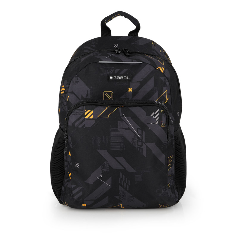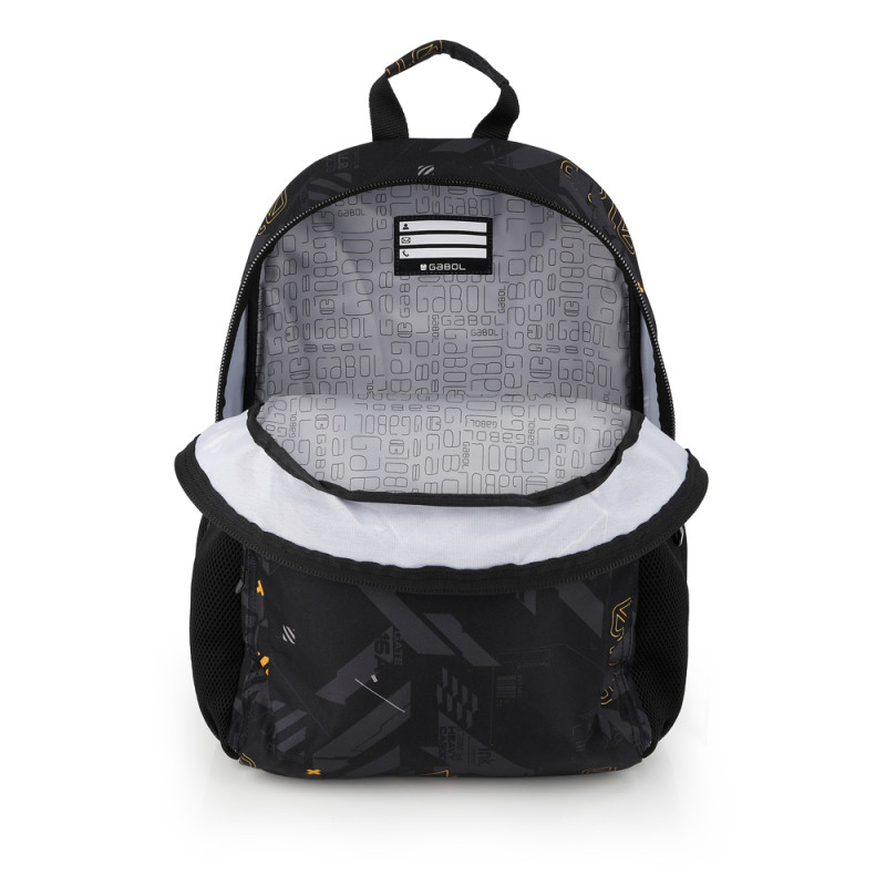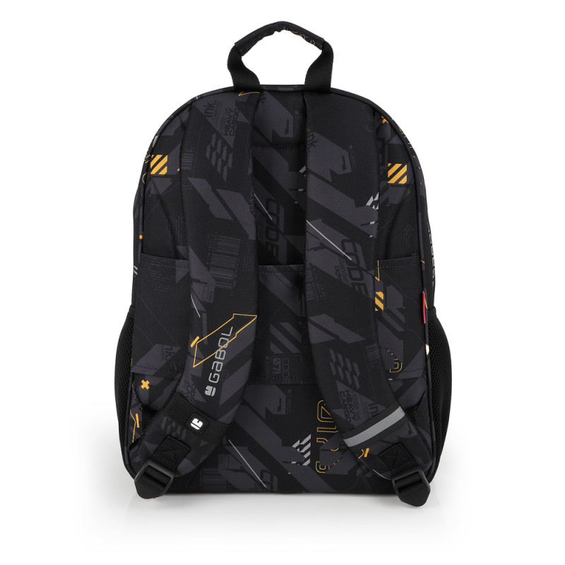 Mochila pequeña con acople a carro Gabol BYTE. Fabricada en Poliéster. Resistente al agua. Cuenta con espalda acolchada. Identificador, organizador interno, base reforzada y elementos reflectantes. Medidas: 31x41x16cm.