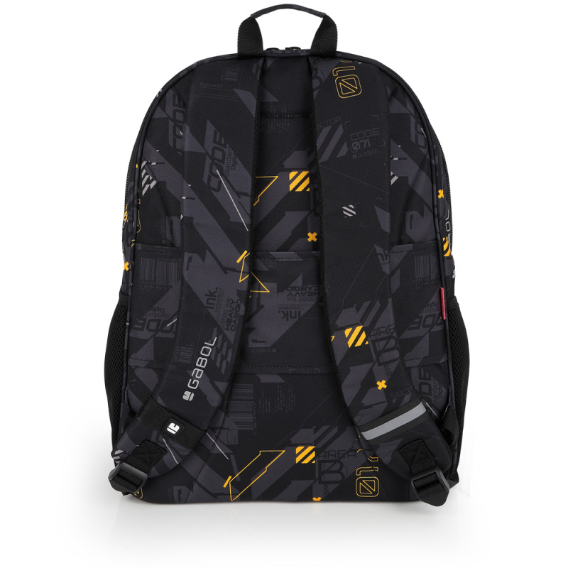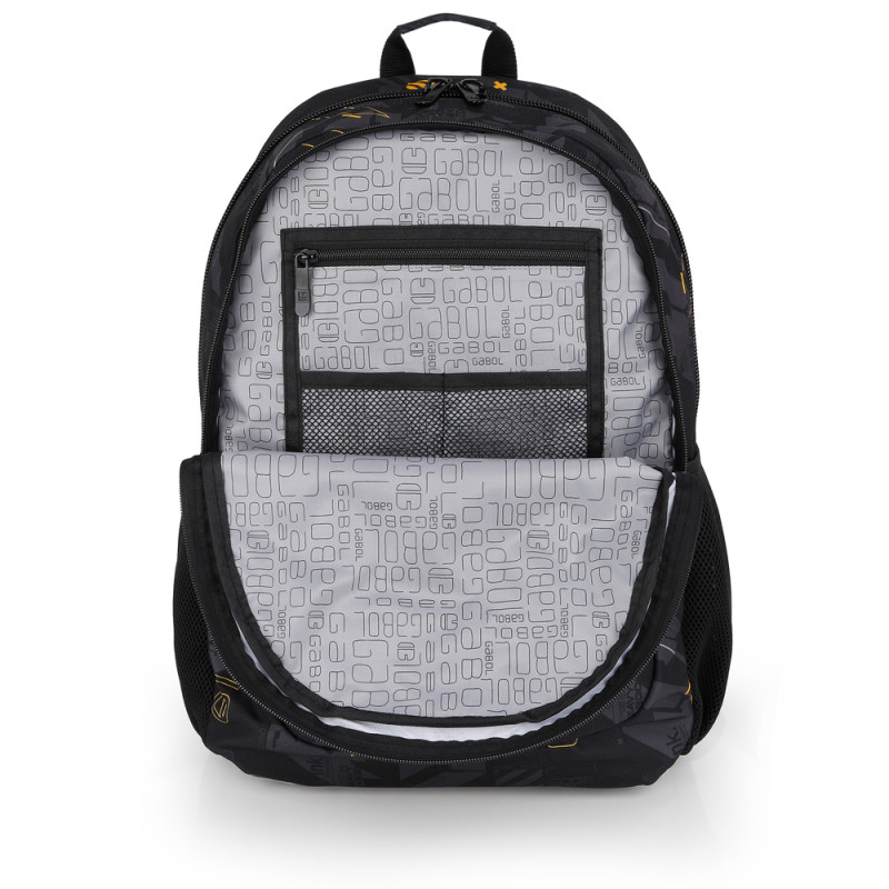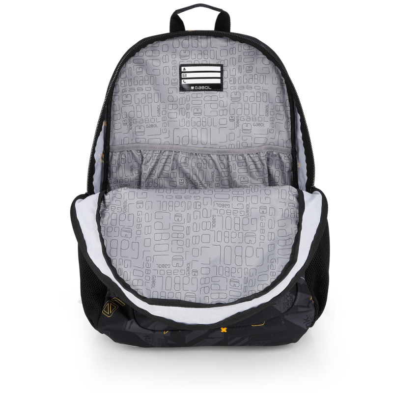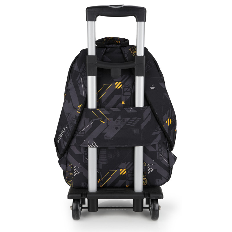 Mochila adaptable a carro con dos compartimentos Gabol BYTE. Fabricada en poliéster. Resistente al agua. Cuenta con espalda acolchada, identificador, organizador interno, funda y capacidad para portátil de 15,6'', base reforzada y elementos reflectante. Medidas: 34x46x20cm.