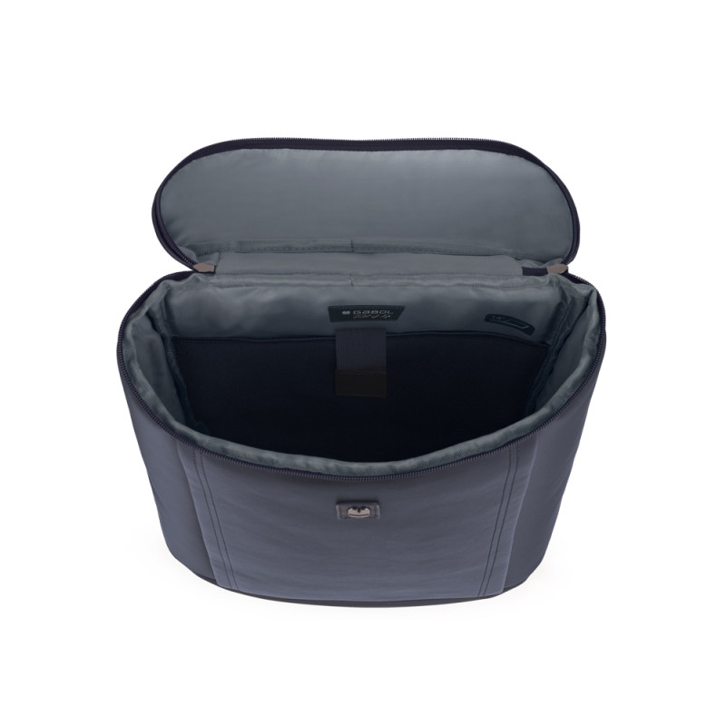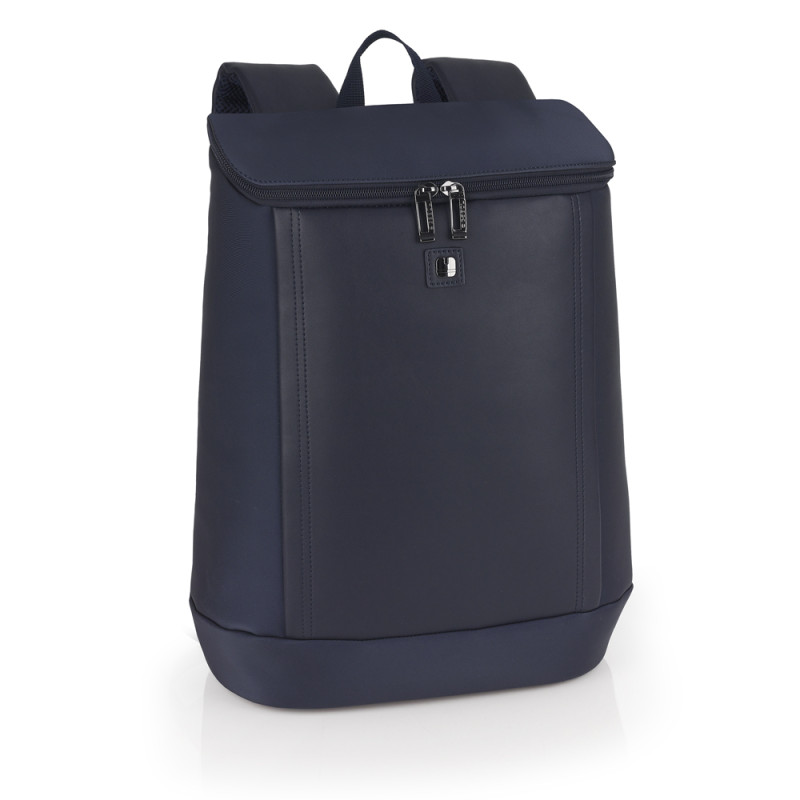 Mochila para portátil de 15,6'' de piel sintética, azul. El interior de la mochila está forrado y acolchado, con funda para portátil y organizador. Fabricada con material libre de plásticos PVC. Medidas: 34x42x14 cm. Volumen: 14,5 L