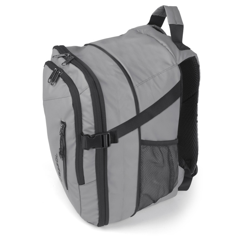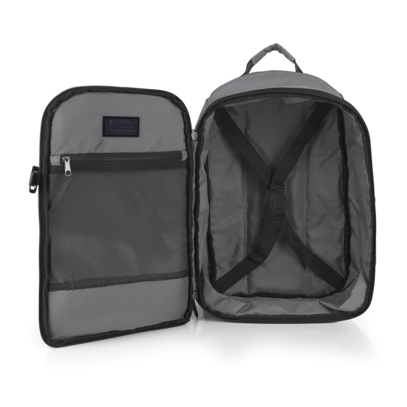 Mochila XS blanda, apta como equipaje de mano (underseat) expandible y con acople a maleta, con 2 departamentos, organizador interno. Fabricado en poliéster resinado y piel sintética, compuesto por un forro de alta calidad y un organizador interno. Medidas: 25x40x20/23 cm - Peso: 0,62 kg - Capacidad: 20/23 L