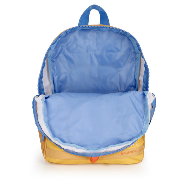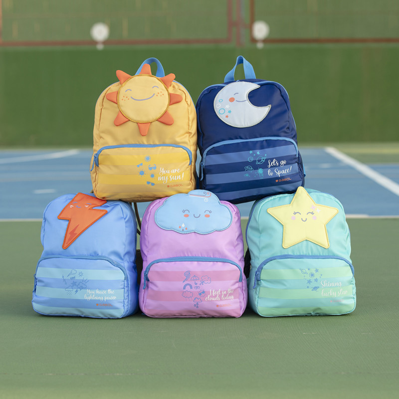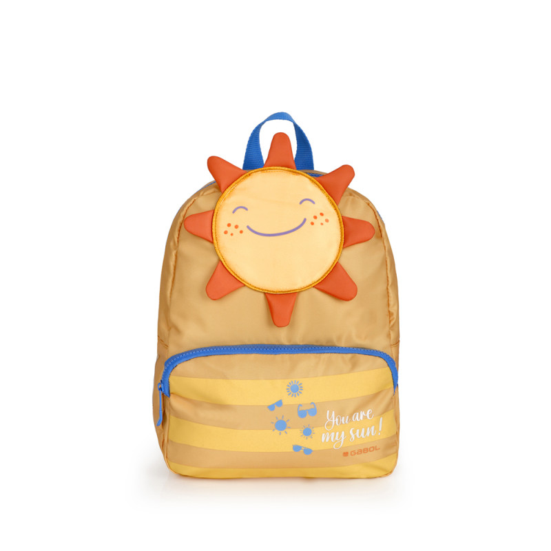 Divertida mochila infantil Sun con material resistente al agua. Fabricada en poliéster y libre de plásticos PVC. Espalda acolchada. Contiene identificador para poner el nombre. Medidas: 25x31x11 cm