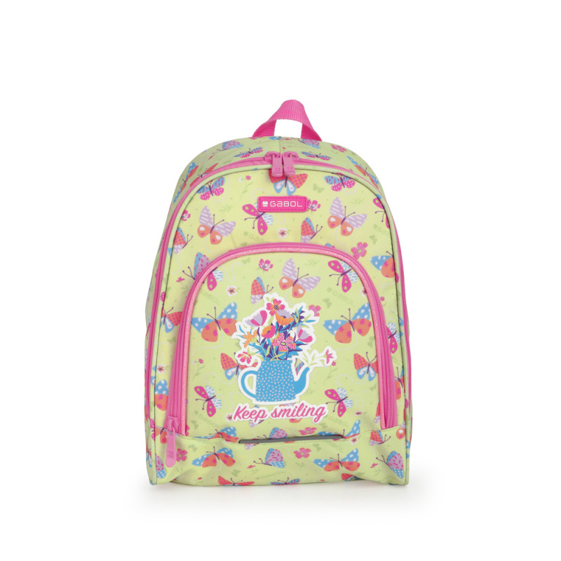 Mochila Gabol BOUQUET. Mochila pequeña con material resistente al agua. Espalda acolchada para servir de amortiguación con el contenido. Incluye identificador para el nombre. Fabricada con material libre de PVC, con un tejido de alta densidad y mayor calidad. Medidas: 27x34x12 cm