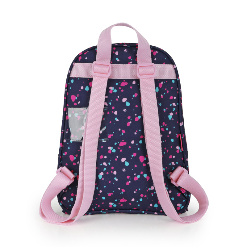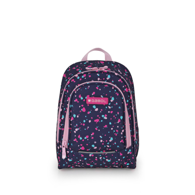 Mochila pequeña Gabol Party. Mochila escolar pequeña. Espalda acolchada para servir de amortiguación con el contenido. Incluye identificador para el nombre. Material resistente al agua. Fabricada con material libre de PVC, con un tejido de alta densidad y mayor calidad. Medidas: 24x30x10 cm