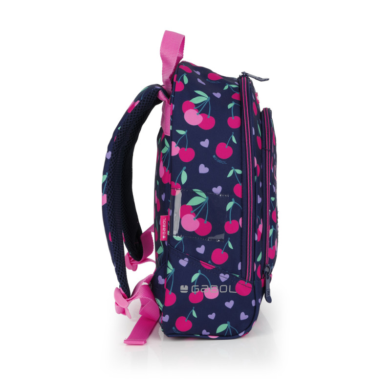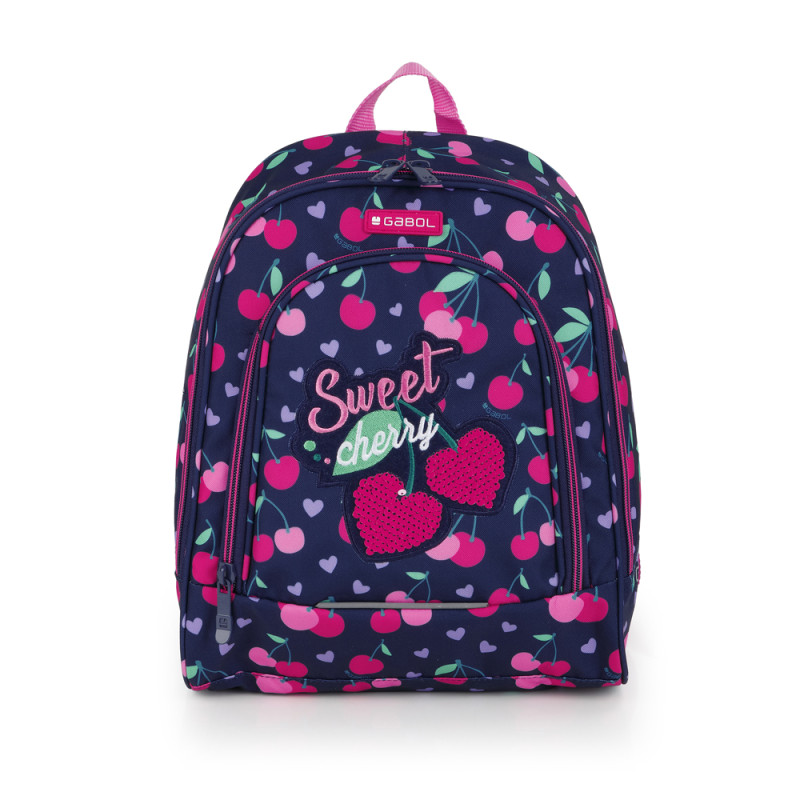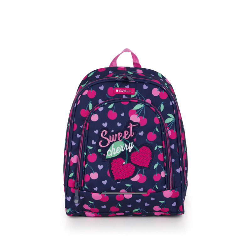 Mochila pequeña Gabol SWEET. Fabricada en poliéster resistente al agua. Cuenta con espalda acolchada, identificador y elementos reflectantes. Medidas: 27x34x12cm.