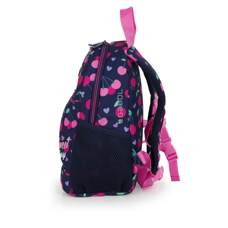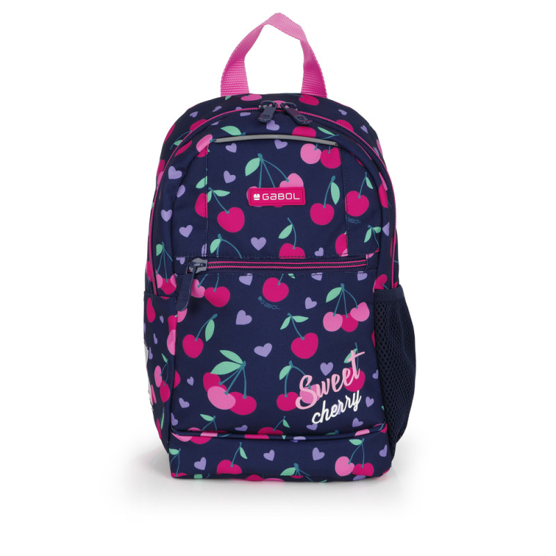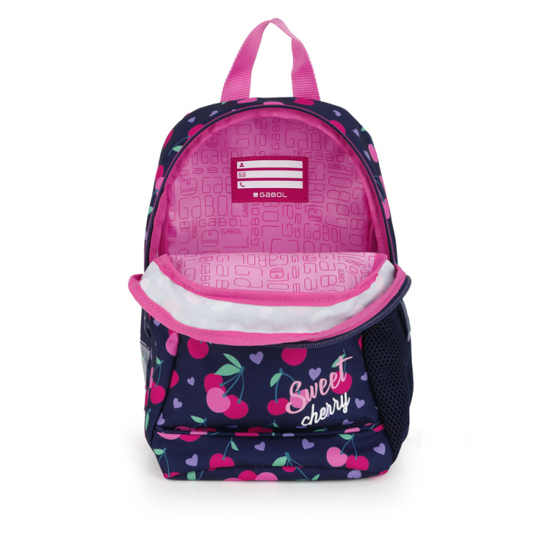 Mochila mini Gabol SWEET. Fabricada en poliéster resistente al agua. Cuenta con espalda acolchada, identificador, acople a pecho y elementos reflectantes. Medidas: 22x30x16cm.