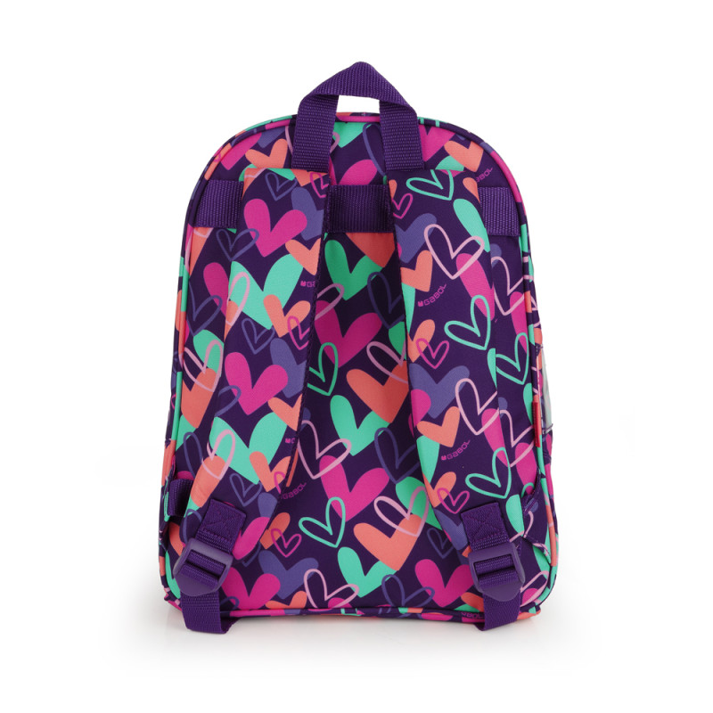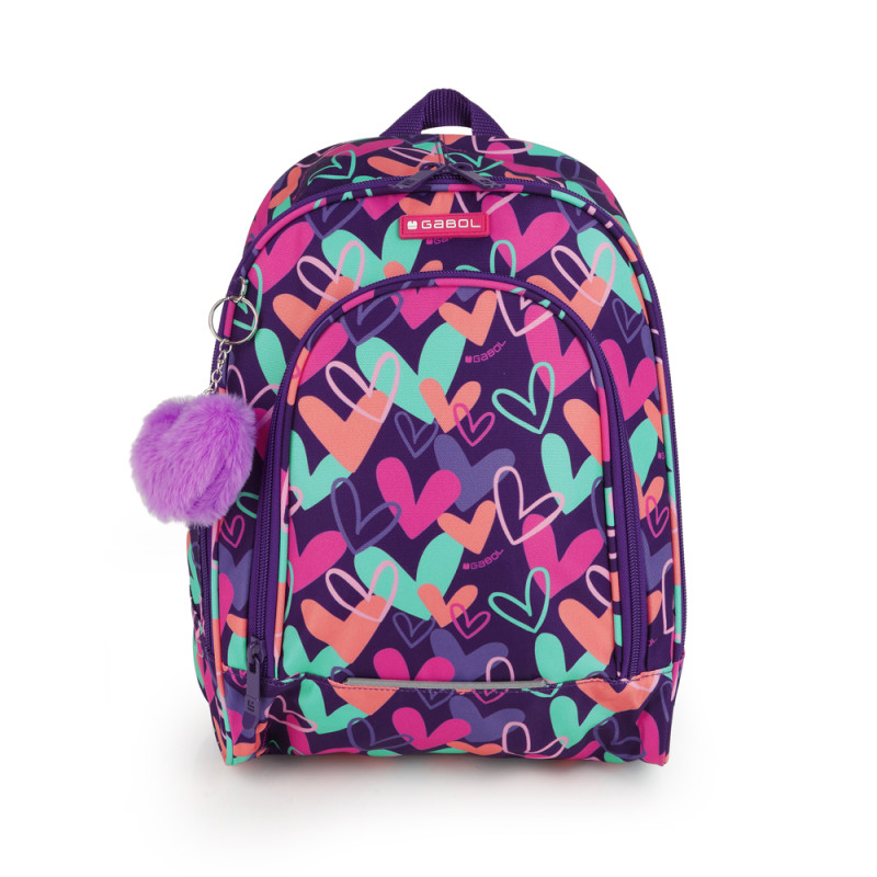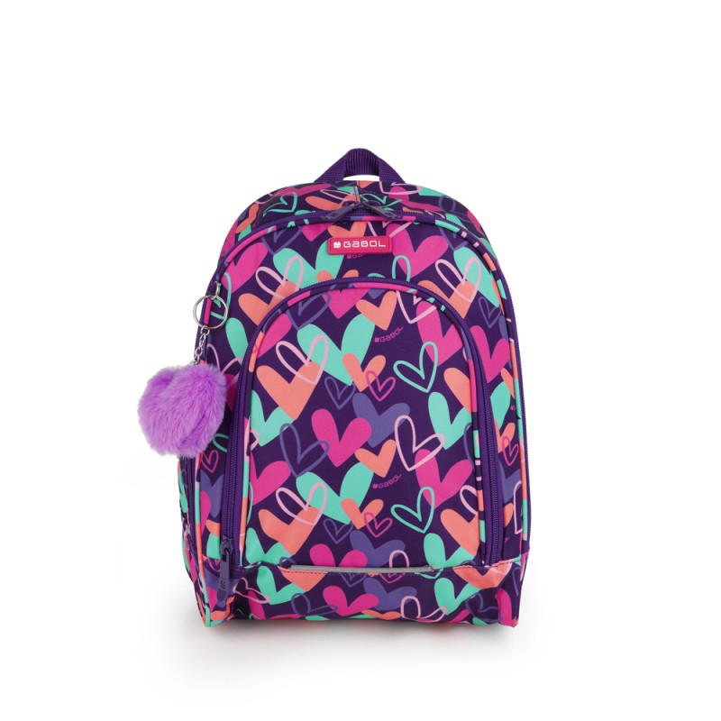 Mochila pequeña Gabol KOKORO. Fabricada en poliéster. Resistente al agua. Cuenta con espalda acolchada, identificador y elementos reflectantes. Medidas: 27x34x12cm.
