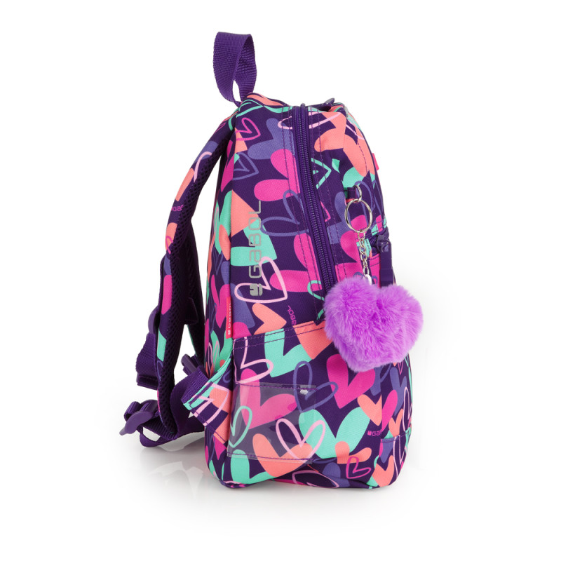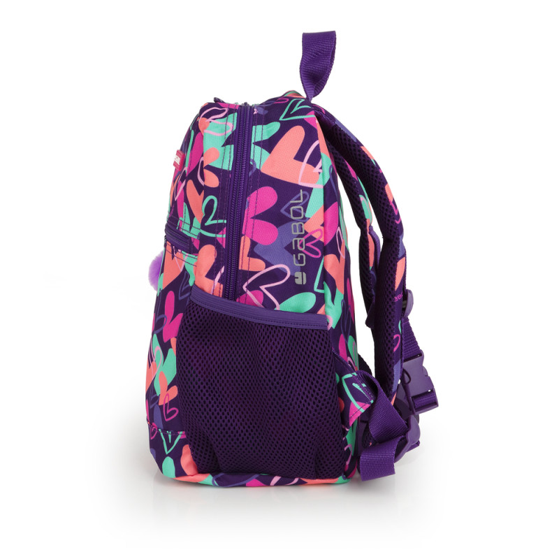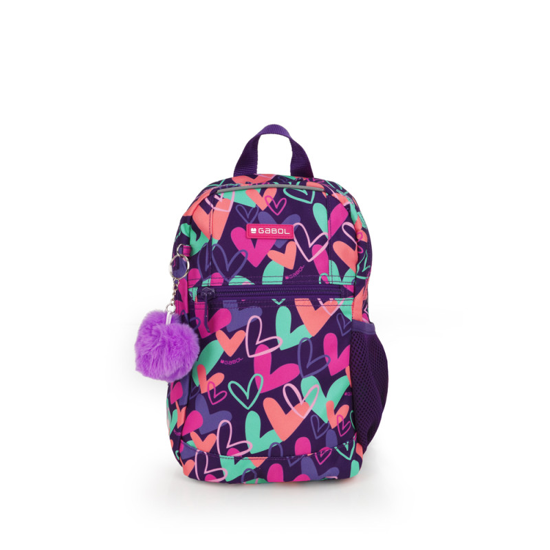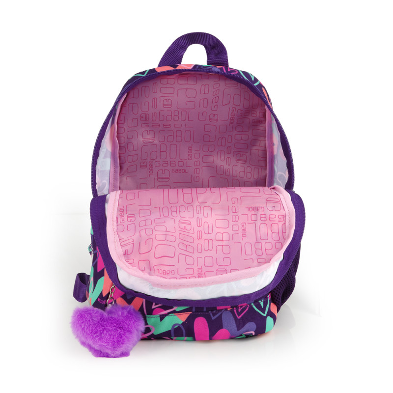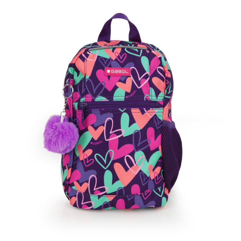 Mochila mni Gabol KOKORO. Fabricada en poliéster. Resistente al agua. Cuenta con espalda acolchada, identificador, acople a pecho y elementos reflectantes. Medidas: 22x30x16cm.