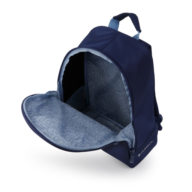 Mochila mini Gabol WHISPER. Fabricada en poliéster. Resistente al agua. Cuenta con espalda acolchada, identificador y elementos reflectantes. Medidas: 27x34x12cm.