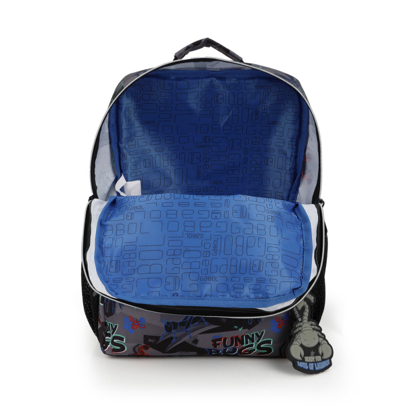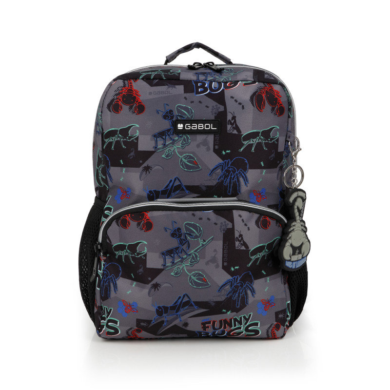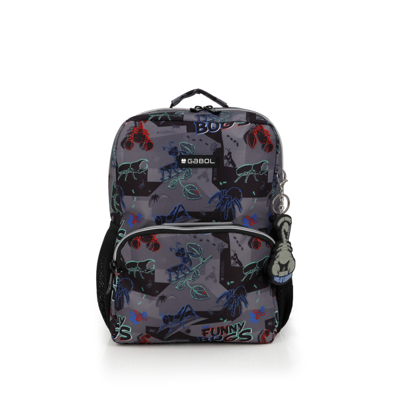 Mochila pequeña Gabol BUGS. Fabricada en poliéster. Resistente al agua. Cuenta con espalda acolchada, identificador y elementos reflectantes. Medidas: 25x33x12cm.
