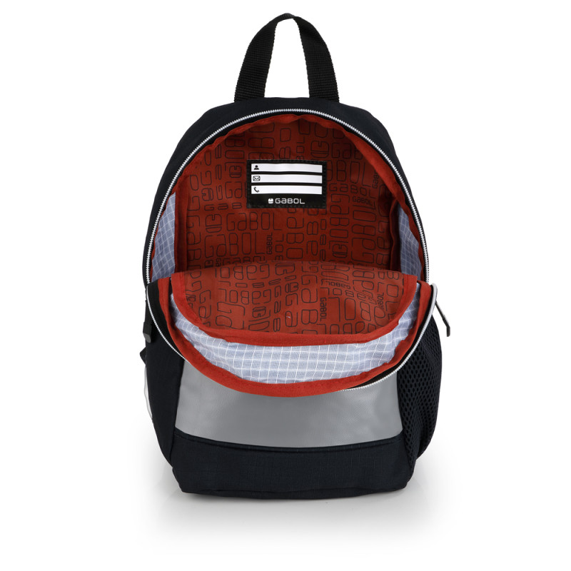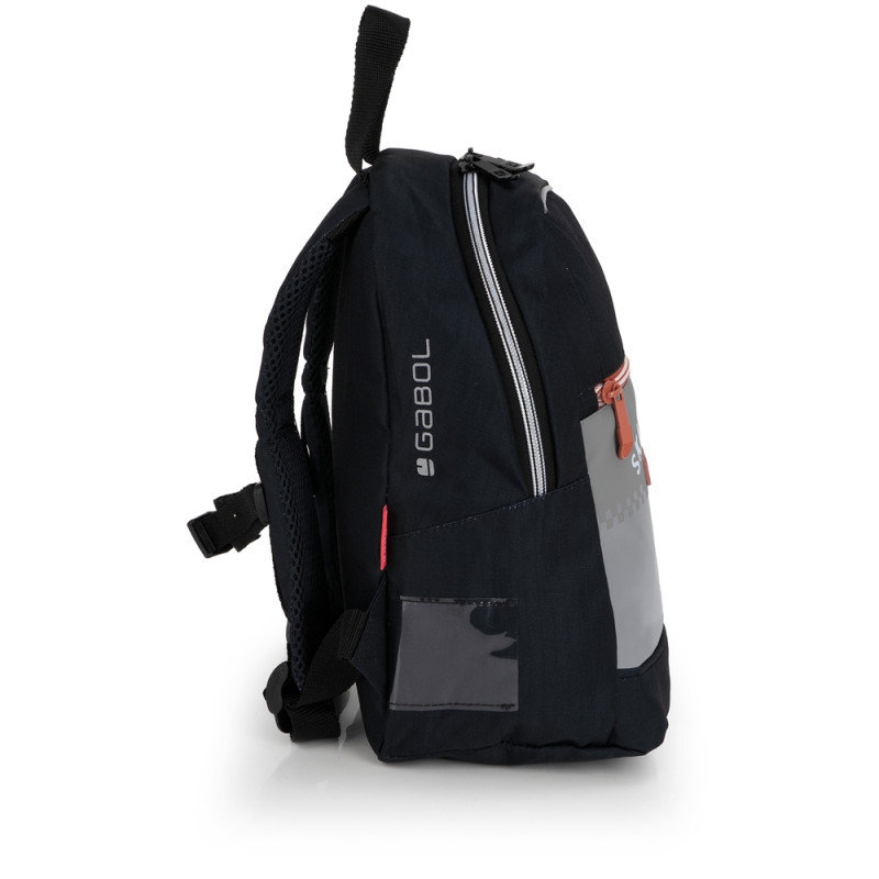 Mochila mini Gabol TRICK. Fabricada en poliéster ripstop, resistente al agua. Cuenta con espalda acolchada, identificador, acople a pecho y elementos reflectantes. Medidas: 22x30x16cm.