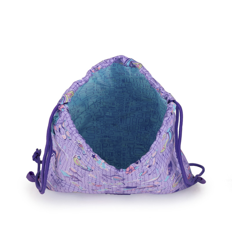 Mochila saco Gabol FUNNY. Mochila saco con cuerdas. Fabricada con poliéster resistente al agua y libre de PVC, con un tejido de alta densidad y mayor calidad. Medidas: 34x44cm