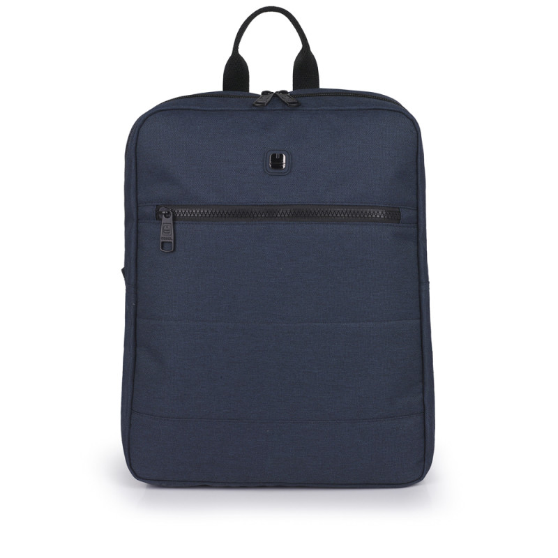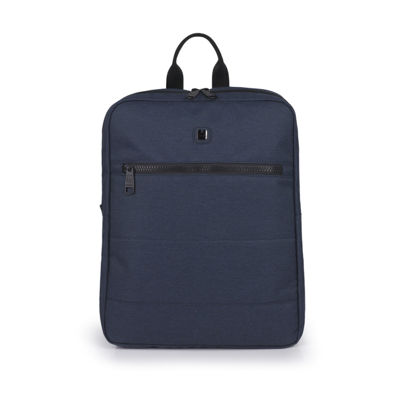 Mochila resistente al agua, de color azul. Incluye cinta en la espalda para acoplarlo a un carro/maleta. Fabricada con poiéster y libre de plásticos PVC. Medidas: 28x36x8 cm.