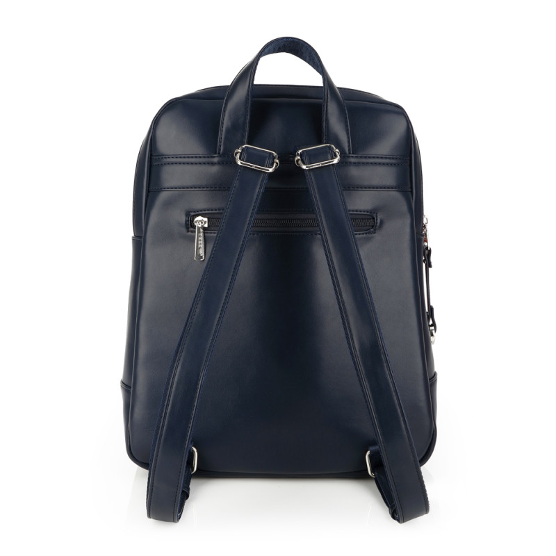 Mochila de piel sintética, azul. Fabricado con materiales libres de PVC. Medidas: 26x32x11 cm
