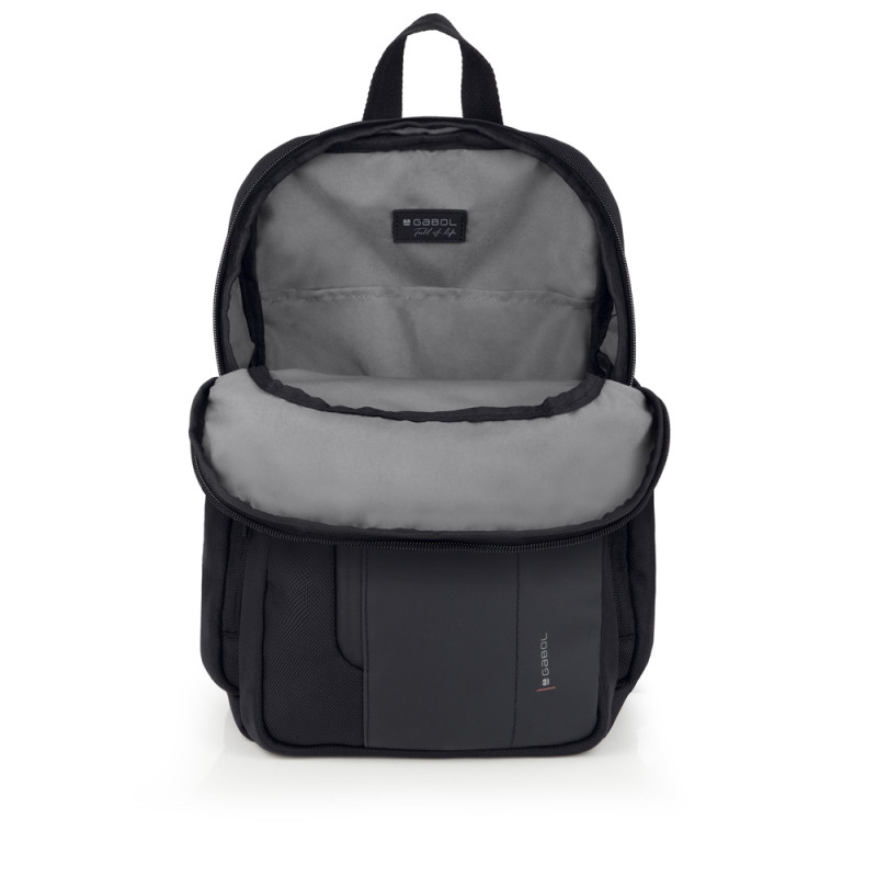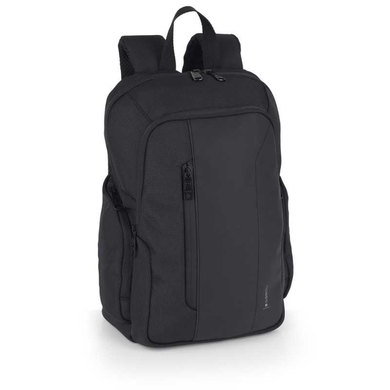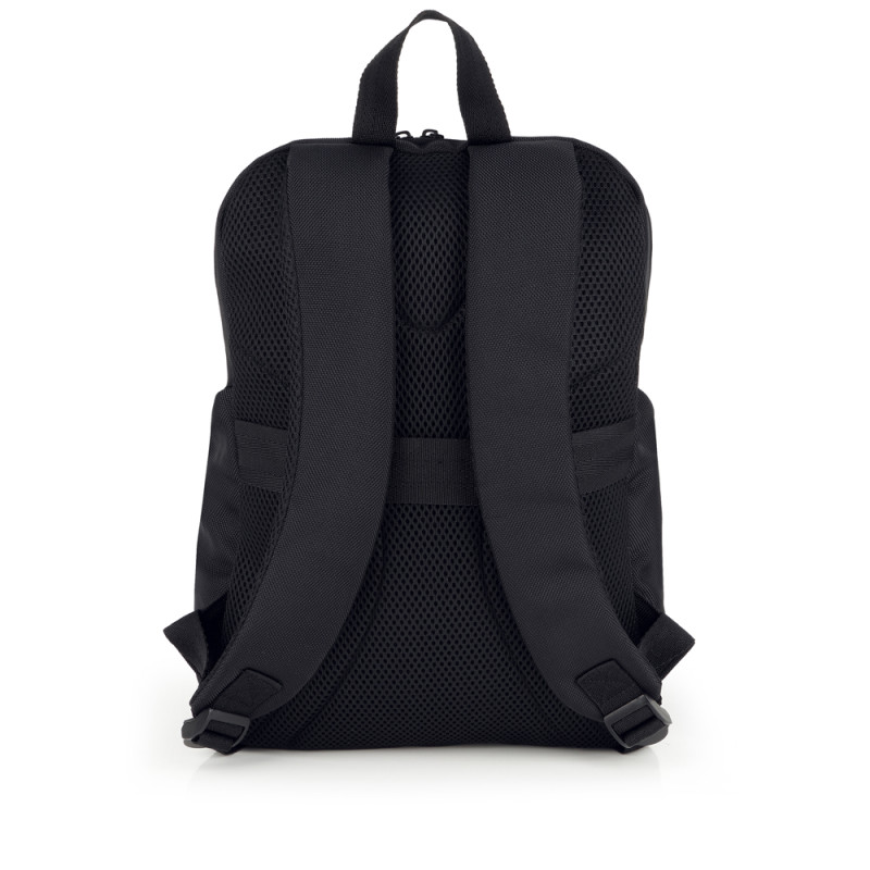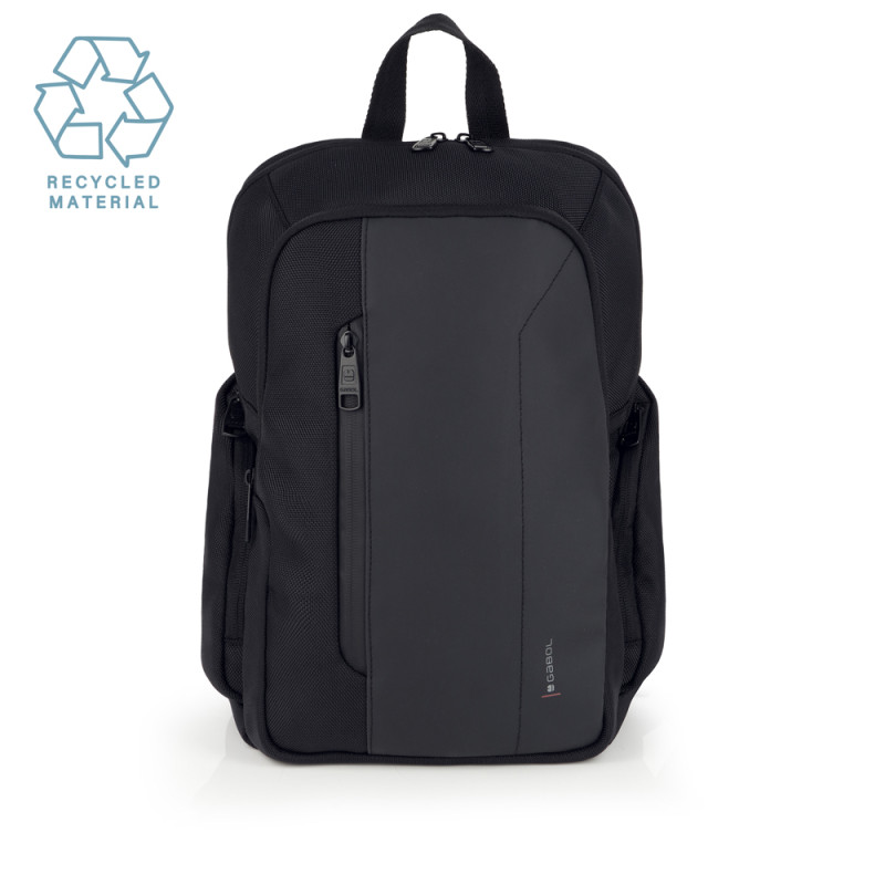 Mochila de la colección Aston. Fabricada en material reciclado y piel sintética, libre de plásticos PVC y resistente al agua. Medidas: 28x39x14 cm.