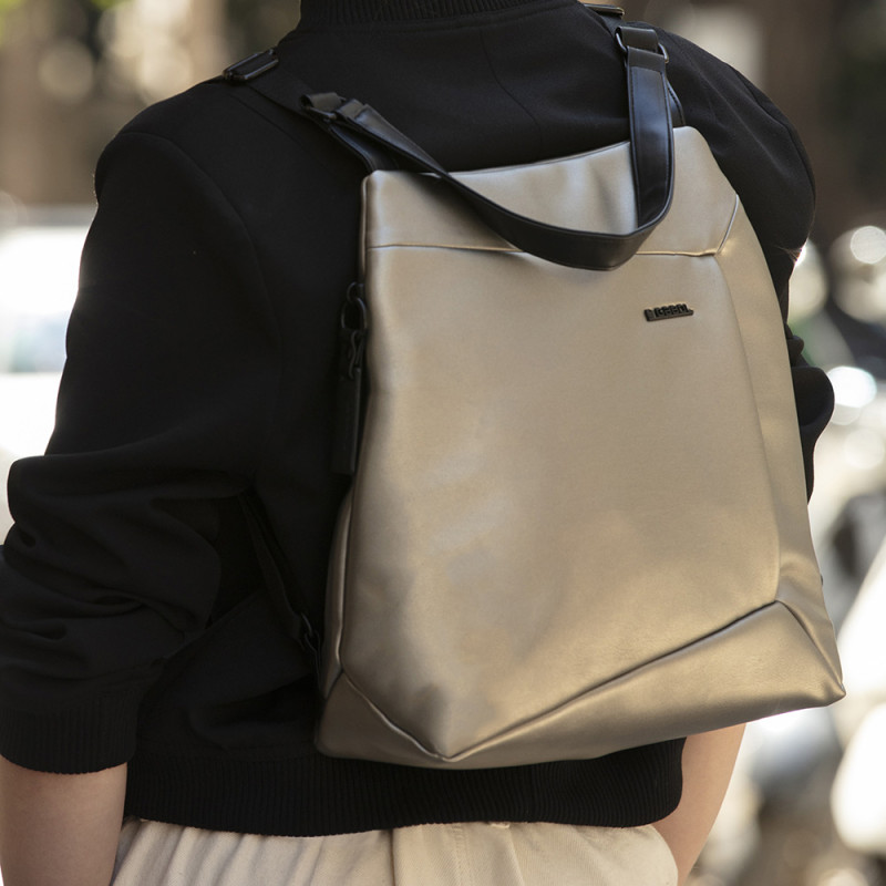 Mochila de piel sintética, champán. Fabricado con materiales libres de PVC. Medidas: 29x33x12 cm