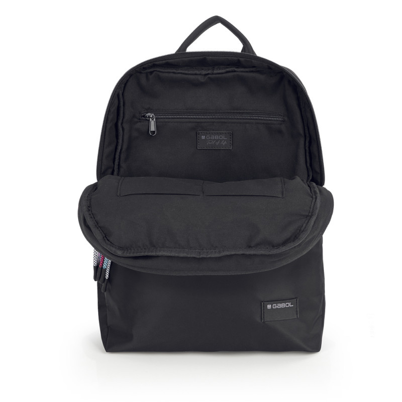 Mochila de nylon, negro. Material resistente al agua. Fabricado con materiales libres de plásticos PVC. Medidas: 25x33x12 cm.