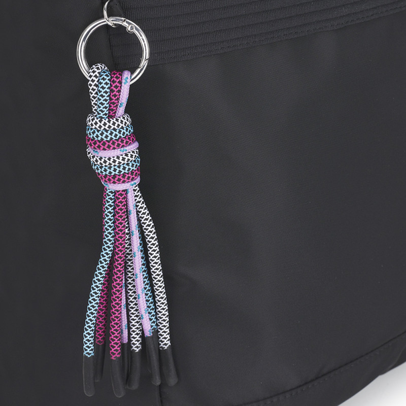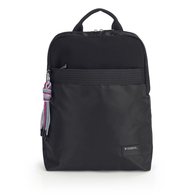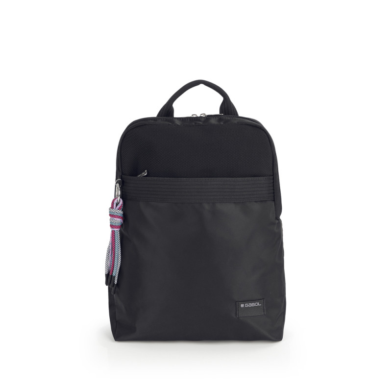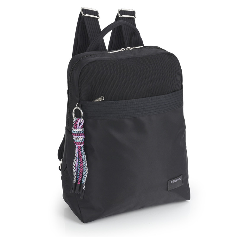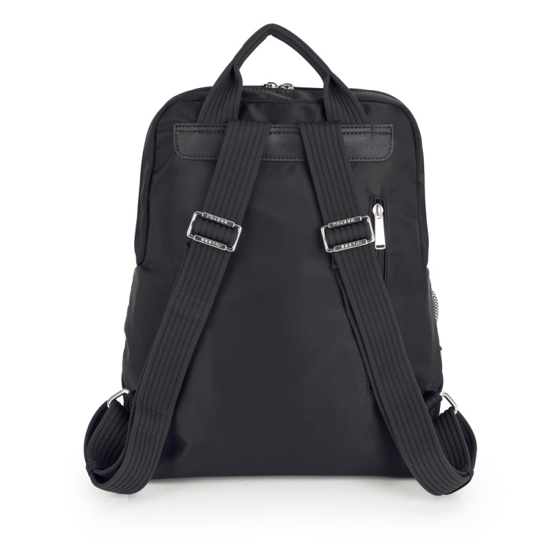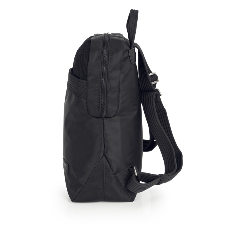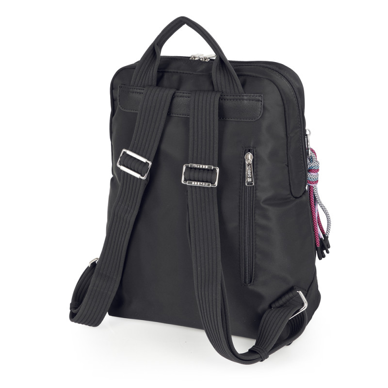 Mochila de nylon, negro. Material resistente al agua. Fabricado con materiales libres de plásticos PVC. Medidas: 25x33x12 cm.