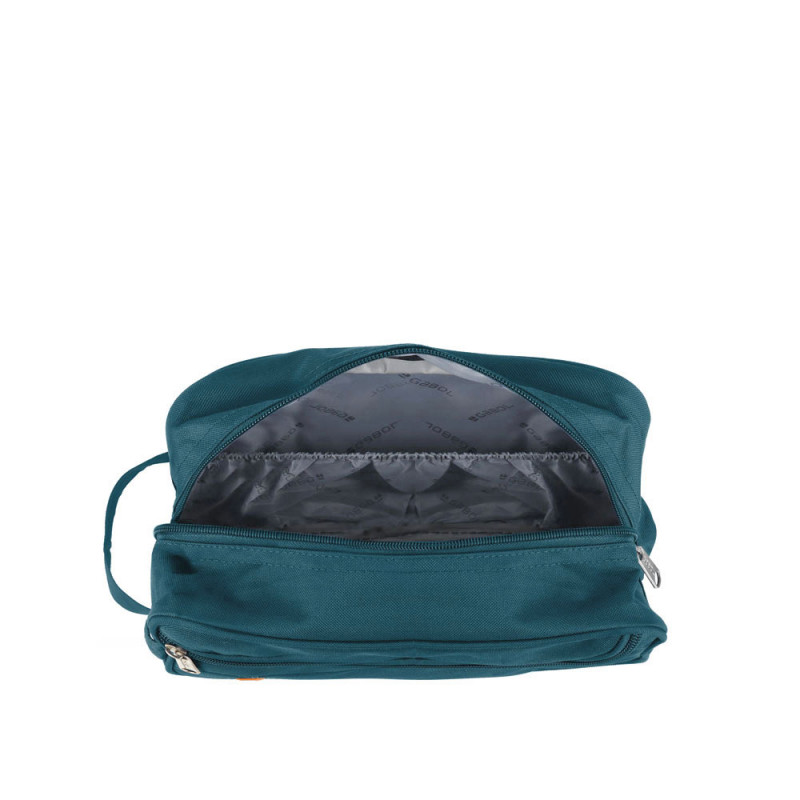 Neceser blando fabricado con material de plástico reciclado. Interior forrado y con varios bolsillos.