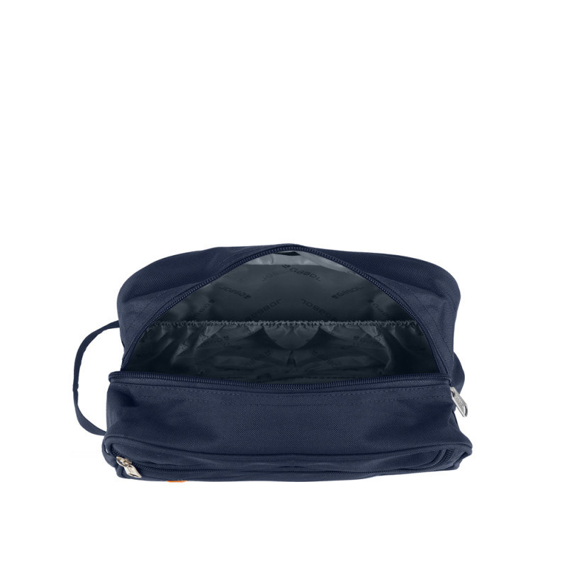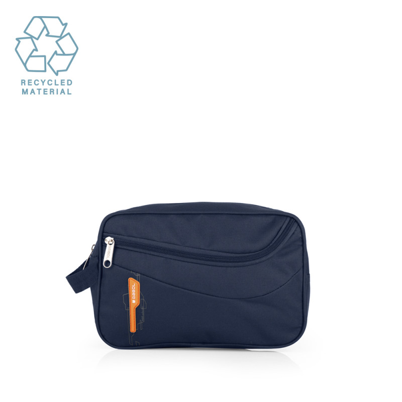 Neceser blando fabricado con material de plástico reciclado. Interior forrado y con varios bolsillos.