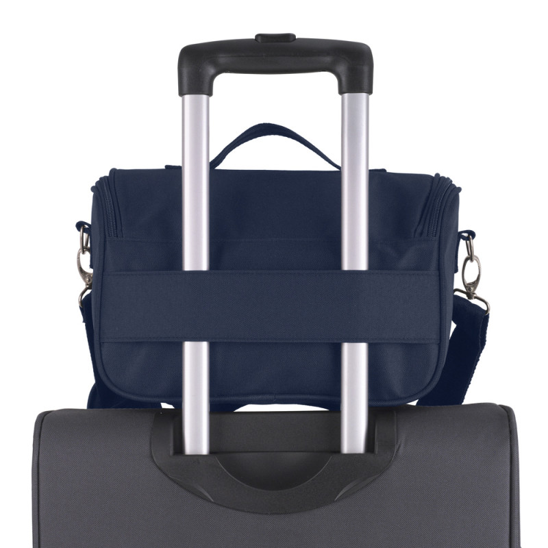 Neceser semirígido. Interior con bolsillo y organizador. Asas extraibles. Cinta para acoplar a maleta.
