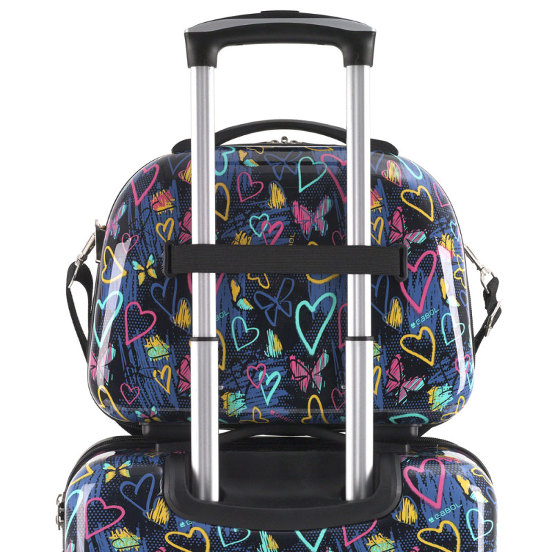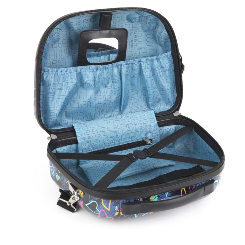 Neceser rígido de ABS y policarbonato con acople a maleta y correa. Interior forrado y con clasificador y espejo. Medidas: Neceser: 29x35x17 cm - Peso: 1 Kg - Capacidad: 14 L.