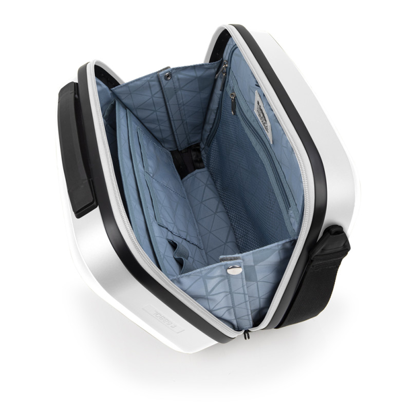 Neceser rígido de viaje fabricado en resistente Polipropileno, con un sistema de acople a maleta y correa para llevar al hombro. Su interior está forrado con tejido reciclado RPET y cuenta con un práctico organizador para mantener tus objetos personales bien distribuidos. Con unas medidas de 35 x 27 x 17 cm, un peso ligero de solo 0,8 kg y una capacidad de 13,8L. Es la opción perfecta para llevar tus imprescindibles de forma cómoda, segura y sostenible.