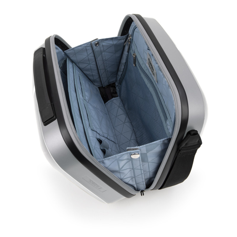 Neceser rígido de viaje fabricado en resistente Polipropileno, con un sistema de acople a maleta y correa para llevar al hombro. Su interior está forrado con tejido reciclado RPET y cuenta con un práctico organizador para mantener tus objetos personales bien distribuidos. Con unas medidas de 35 x 27 x 17 cm, un peso ligero de solo 0,8 kg y una capacidad de 13,8L. Es la opción perfecta para llevar tus imprescindibles de forma cómoda, segura y sostenible.