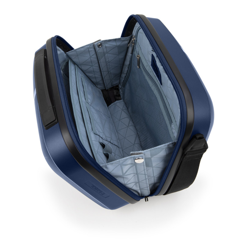 Neceser rígido de viaje fabricado en resistente Polipropileno, con un sistema de acople a maleta y correa para llevar al hombro. Su interior está forrado con tejido reciclado RPET y cuenta con un práctico organizador para mantener tus objetos personales bien distribuidos. Con unas medidas de 35 x 27 x 17 cm, un peso ligero de solo 0,8 kg y una capacidad de 13,8L. Es la opción perfecta para llevar tus imprescindibles de forma cómoda, segura y sostenible.