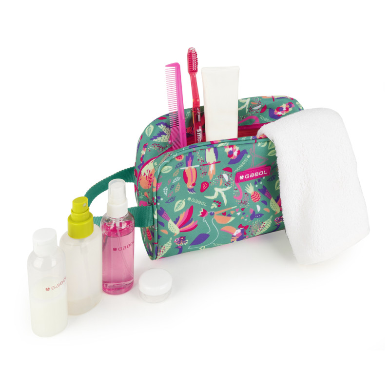 Neceser Gabol VIDA. Cuenta con acople a carro y es resistente al agua. Fabricado en poliéster. Medidas: 24x15x11cm.