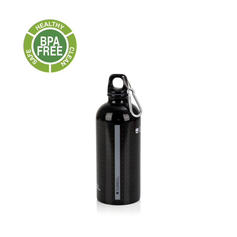 Botella de aluminio. Fabricada con material libre de PVC y BPA.