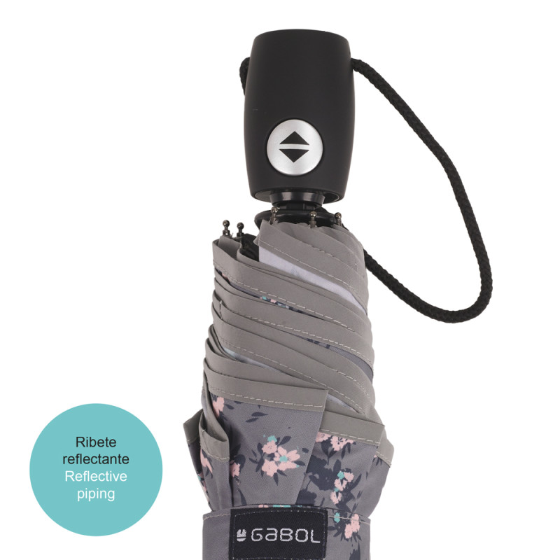 Paraguas plegable Gabol SECRET. Cuenta con elementos reflectantes y es resistente al viento.