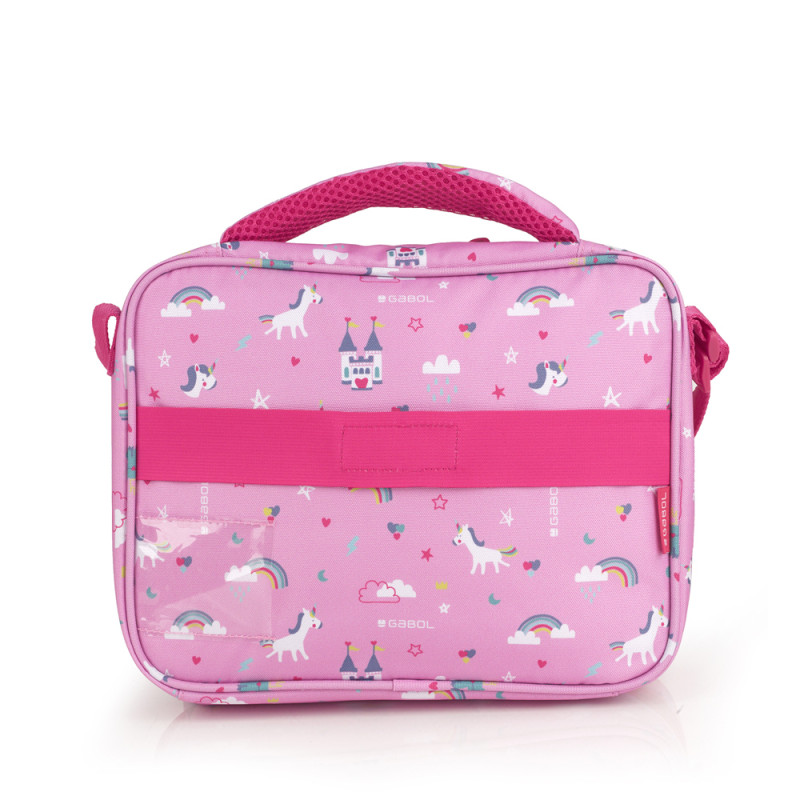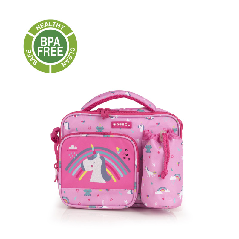 Porta alimentos térmico BPA Free, con varios compartimentos y bolsillo para botella. Fabricado con material libre de PVC con un tejido de alta densidad y alta calidad. Material impermeable. Contiene identificador para poner el nombre. Cinta para acoplarlo a un carro/maleta. Interior acolchado. Medidas: 27x21x6 cm