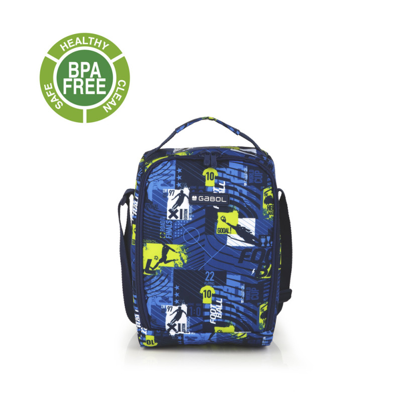Porta alimentos térmico BPA Free. Fabricado con material libre de PVC y BPA, con un tejido de alta densidad y alta calidad. Material impermeable. Contiene identificador para poner el nombre. Cinta para acoplarlo a un carro/maleta. Interior acolchado. Medidas: 19x27x12 cm