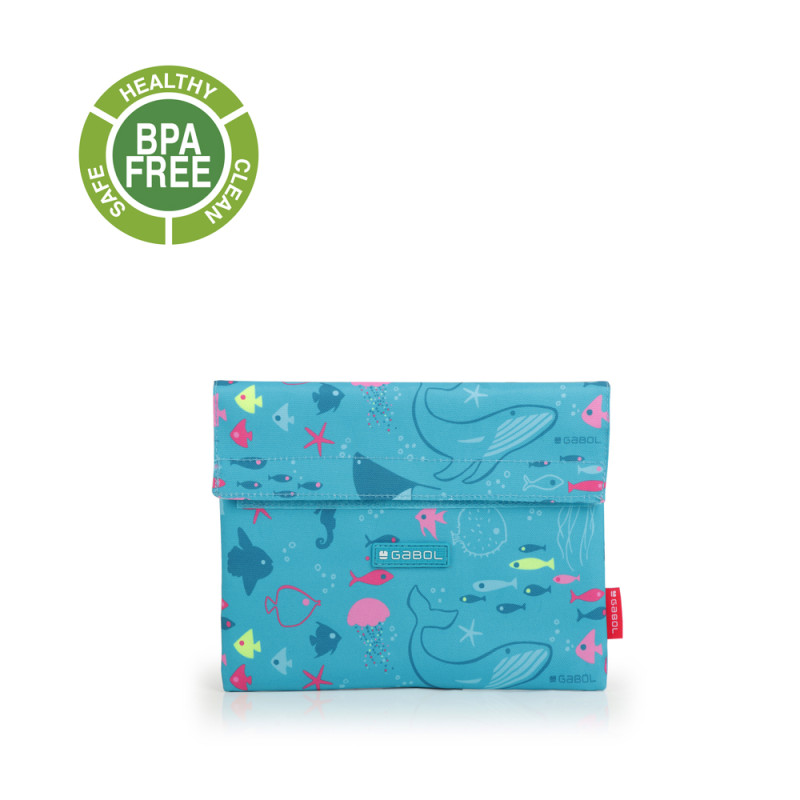 Funda de bocadillo térmica ACQUA. Fabricado con material libre de PVC con un tejido de alta densidad y alta calidad. Libre de BPA. Material resistente al agua. Medidas: 23x18 cm.