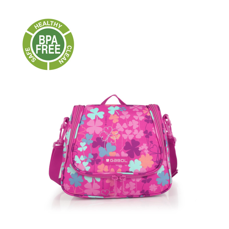 Porta alimentos térmico CLOVER. Fabricado con material libre de PVC con un tejido de alta densidad y alta calidad. Libre de BPA. Material resistente al agua. Contiene identificador para poner el nombre. Cinta para acoplarlo a un carro/maleta. Interior acolchado. Medidas: 25x21x13 cm.