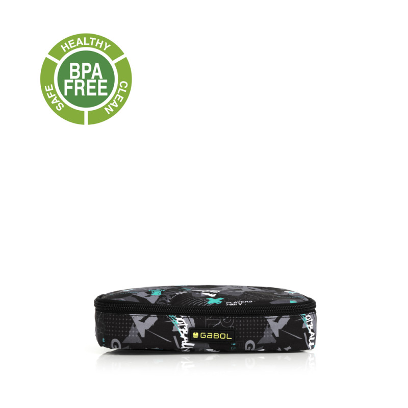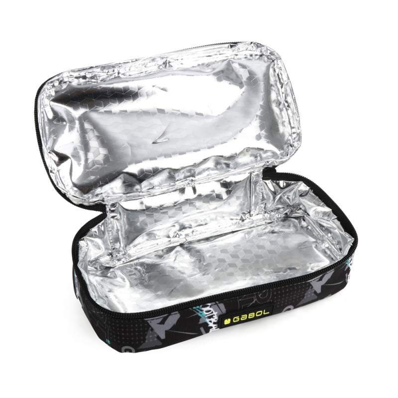 Porta alimentos térmico Gabol SCORE. Porta alimentos térmico, sin BPA. Fabricado con material libre de PVC con un tejido de alta densidad y alta calidad. Material resistente al agua. Contiene identificador para poner el nombre. Cinta para acoplarlo a un carro/maleta. Interior acolchado. Medidas: 25x21x13 cm