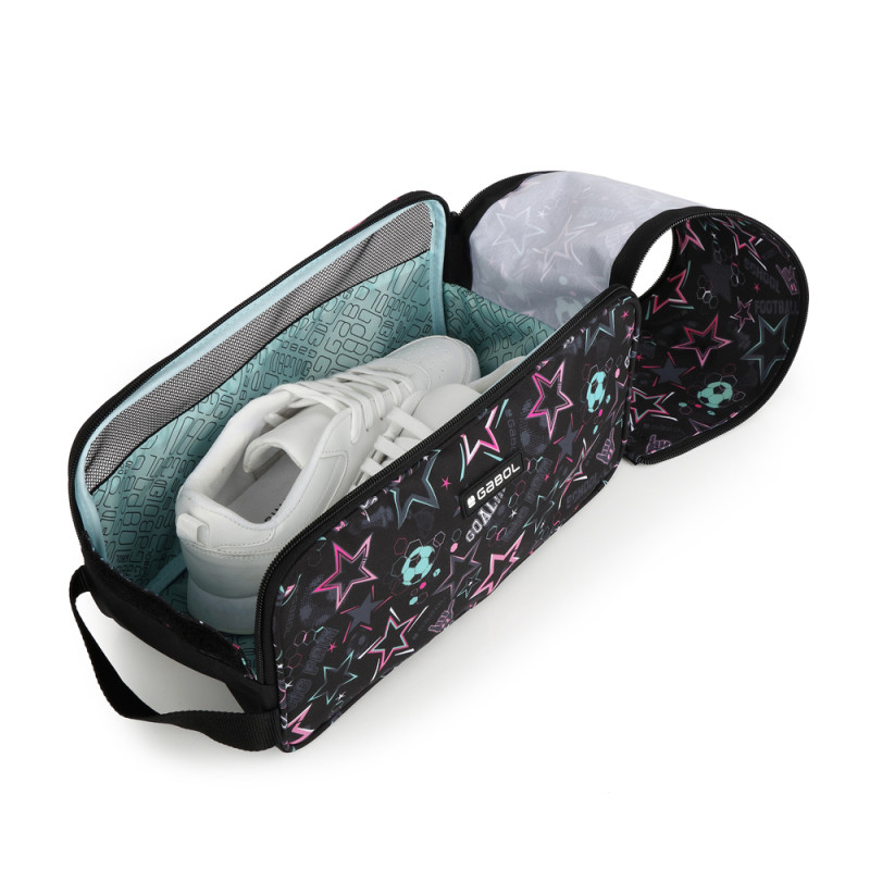 Bolsa para guardar las zapatillas. Apertura con cremallera. rejilla transpirable y asa. Fabricado con material resistente al agua y libre de PVC.