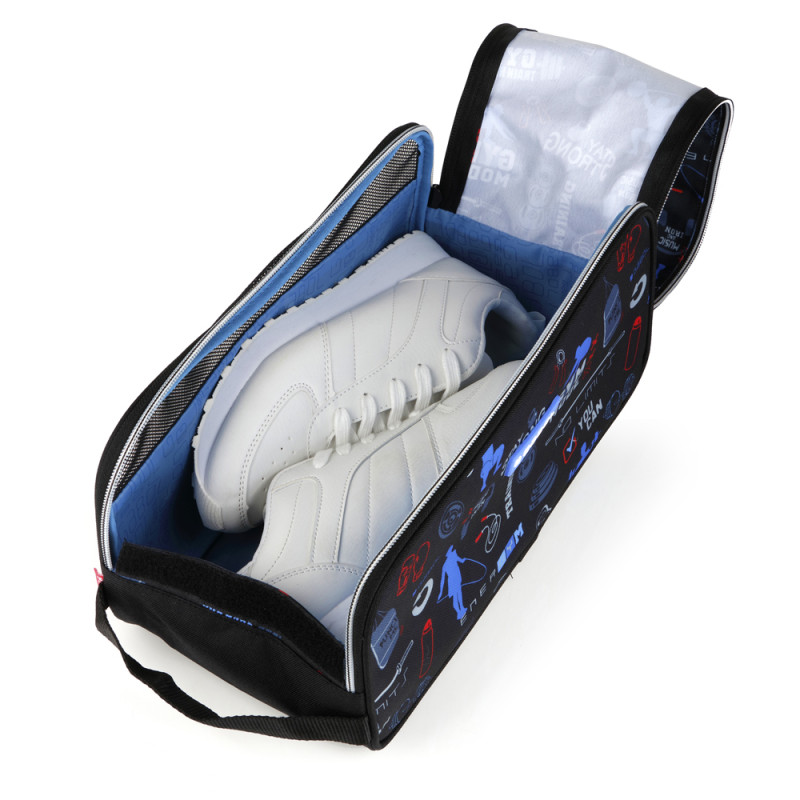 Bolsa para guardar las zapatillas. Apertura con cremallera. rejilla transpirable y asa. Fabricado en políéstar resistente al agua y libre de plásticos PVC. Medidas: 33x16x17 cm. Medidas: 33x16x17 cm